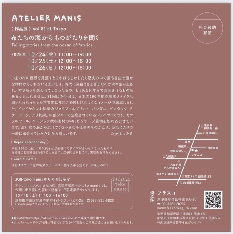 https://ateliermanis.base.shop にて順次ご紹介中です。
